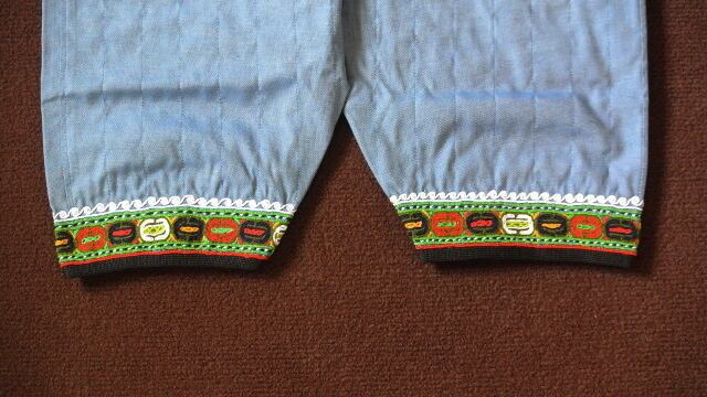 トルクメン女性がコイネクと呼ばれるワンピースドレスの下に履いている、サルエルパンツです。ゴムを入れて、腰骨のあたりに引っかけて履きます。