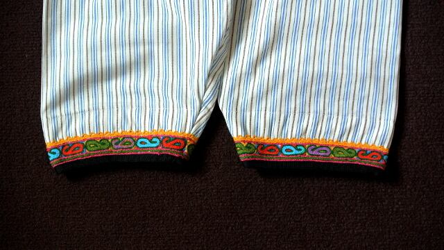 トルクメン女性がコイネクと呼ばれるワンピースドレスの下に履いている、サルエルパンツです。ゴムを入れて、腰骨のあたりに引っかけて履きます。