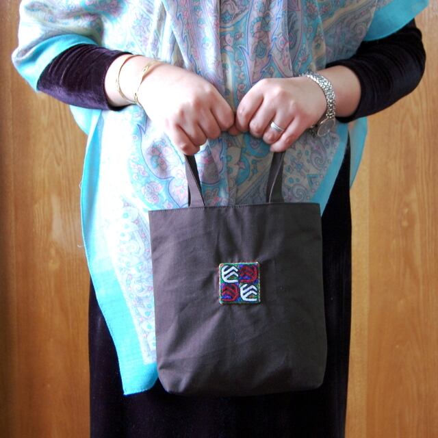 片面に刺繍ワッペンのついた、薄い帆布のトートバッグです。